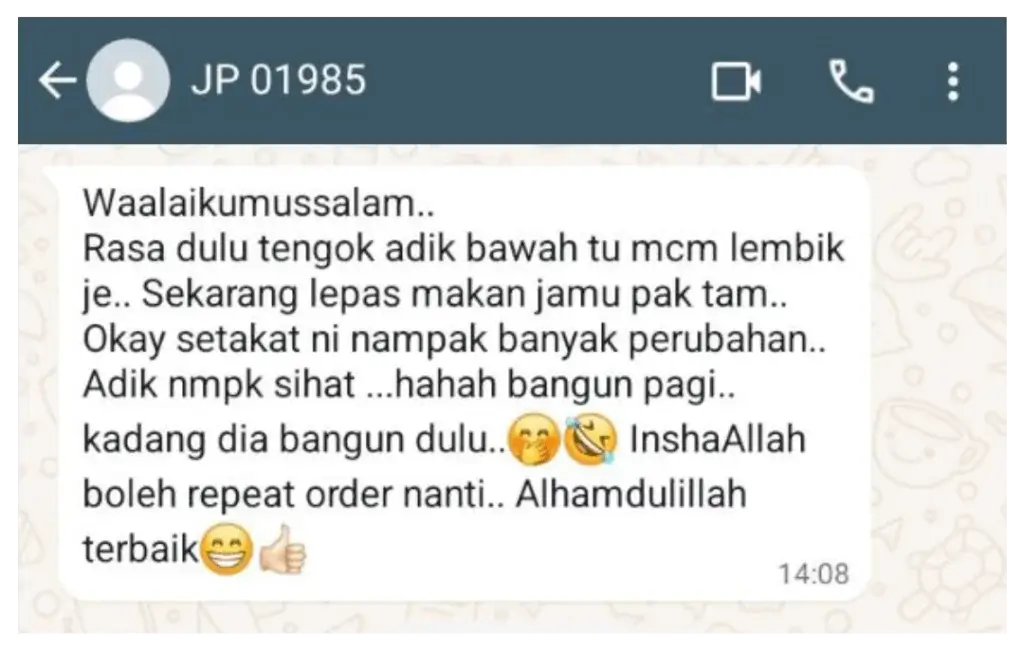PRODUK HERBA ini bukan alat bantuan sementara, tapi rawatan. Jadi kita tak bergantung dgn herba ni selamanya. Lepas puas hati dgn kesan yg kita dpt boleh stop penggunaan, kesannya adalah kekal.