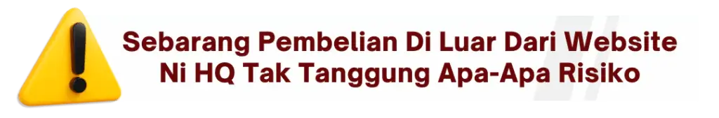 Sebarang pembelian di luar dari website ini HQ tak menjamin sebarang ketulenan produk.