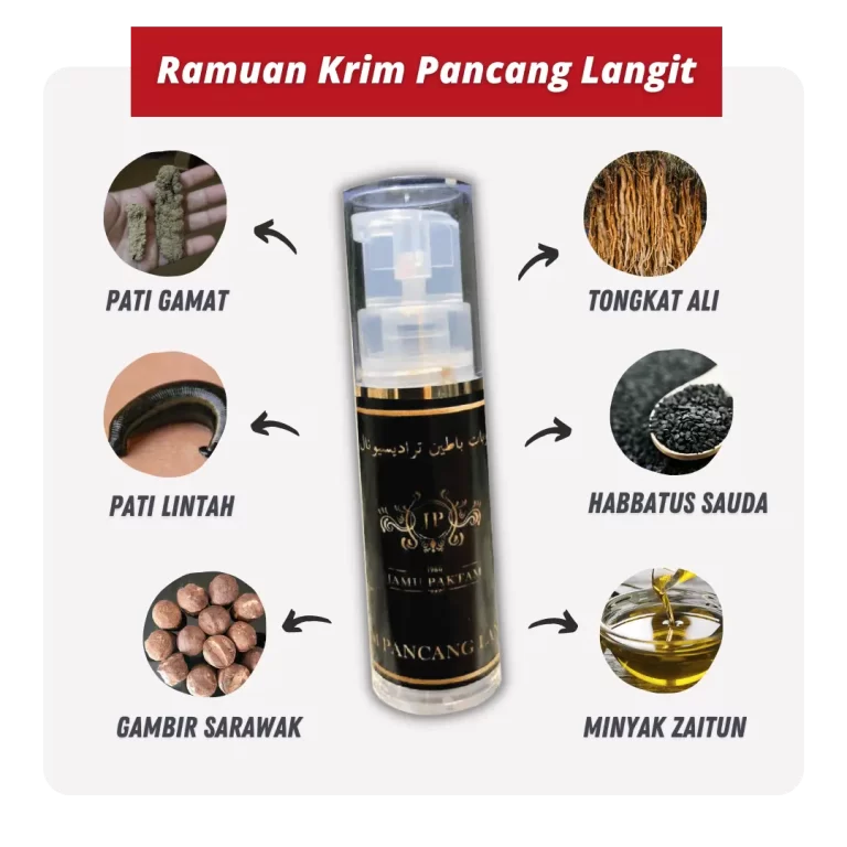 Tongkat Ali dan Ubi Jaga, belalai gajah, akar kucing galak, akar kurma, gambir sarawak, gamat serta estrak minyak lintah